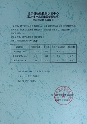 2021年5月,遼寧省市場(chǎng)監(jiān)督管理舉辦2021年度實(shí)驗(yàn)室能力驗(yàn)證活動(dòng),本科室參加了鋼筋拉伸性能能力驗(yàn)證活動(dòng)。